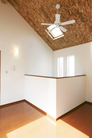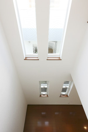 吹き抜けにスリット窓を設け1階に光を落とす