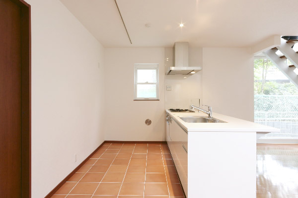 キッチンからリビングを望む