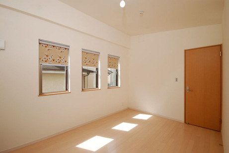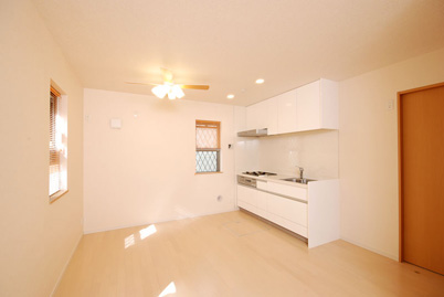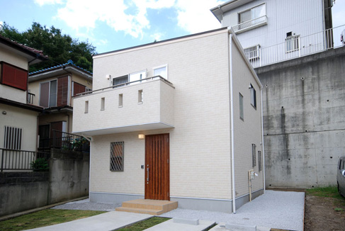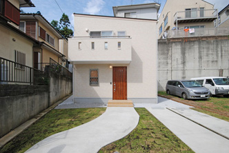 単身女性のための一戸建て住宅。延床面積60㎡弱の2LDKです。水回りは1階に集約させ、余計な動線をなくしました。LDK,寝室ともにプライバシー性を考慮し、窓は控えめにつけられています。外観は、お施主様のたっての希望で、しろいhakoとしました。