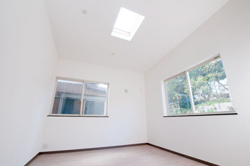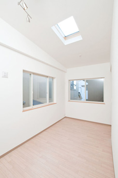 2階は勾配天井+トップライト
