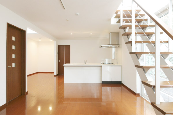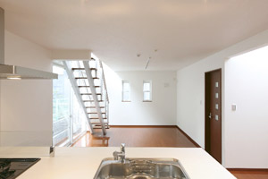 キッチンからリビングを望む