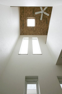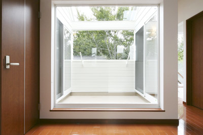 吹き抜けにスリット窓を設け1階に光を落とす