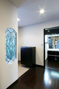 お仕事を引退されたご夫妻が、次なるご生活の場に選ばれた場所は、潮風薫、鵠沼海岸・・・外観、インテリアともに落ち着いた雰囲気に仕上がりました。随所に奥様がご趣味で作成された、ステンドグラスがはめこまれ、空間を彩ります。