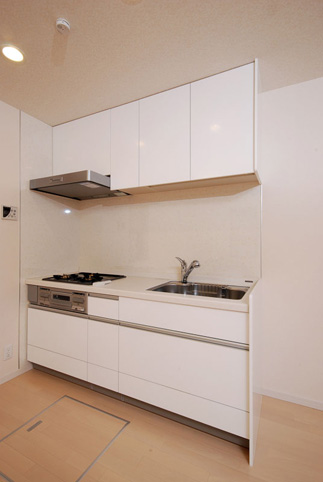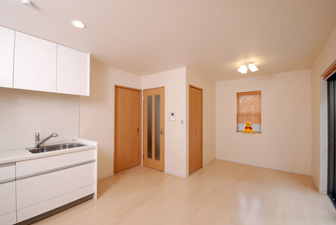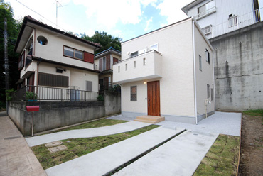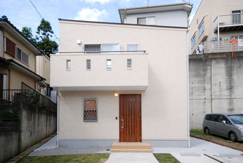 単身女性のための一戸建て住宅。延床面積60㎡弱の2LDKです。水回りは1階に集約させ、余計な動線をなくしました。LDK,寝室ともにプライバシー性を考慮し、窓は控えめにつけられています。外観は、お施主様のたっての希望で、しろいhakoとしました。