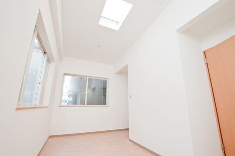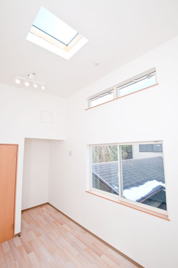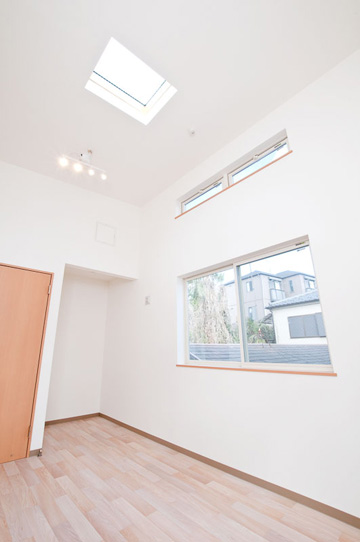 2階は勾配天井+トップライト